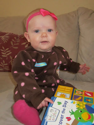 Another month has come and gone, and Annie decided to celebrate by getting sick. Boo. Tuesday morning I was rocking Annie and thinking to myself how absolutely blessed we are that, barring a little nasal congestion, she has never been sick in her entire life. Tuesday night she threw up six times, and I am pretty sure there is nothing worse than watching a little baby throw up. When she woke up yesterday morning, though, she was perfectly fine. She was happy as ever, wasn't running a fever, and had stopped the vomiting. She had no appetite whatsoever, though. I couldn't get her to eat almost at all yesterday. Before bed last night, she finally nursed well, but then was up just a couple hours later throwing up again. Then she SCREAMED most of the night, refusing to eat or be comforted. It was miserable. She slept a few hours this morning, and seems happy again today, but is still not eating anything. I am taking her to the doc this afternoon.